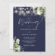 Navy Blue Greenery Lights QR Code Photo Wedding Invitation