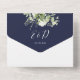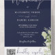 Navy Blue Greenery Monogram QR Code Wedding All In One Invitation