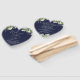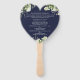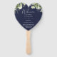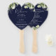 Navy Blue Greenery Wedding Program Heart Hand Fan