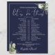 This stylish navy blue greenery wedding schedule-timeline can be personalized with your wedding details in chic typography. Designed by Thisisnotme©
