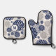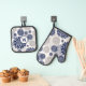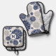 Navy Blue Grey Flower Pattern Monogram Oven Mitt & Pot Holder Set