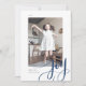 Navy Blue Hand Lettered Script Joy Christmas Photo