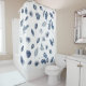 Navy Blue Hand Painted Watercolour Leaves Flowers Shower Curtain