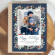 Send warm happy holidays wishes with this stylish Christmas photo card featuring a rich navy blue backdrop and delicate winter greenery foliage. Designed with elegant calligraphy script and soft watercolor branches, this template adds timeless charm to your family greetings. A beautiful way to share memories, these holiday photo cards combine modern elegance with natural details, making them perfect for celebrating the season in style.