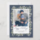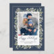 Send warm wishes with this Happy Holidays Christmas photo card featuring a rich navy blue backdrop accented by winter greenery foliage and delicate holiday floral details. The design showcases your favourite photo with timeless charm, highlighted by elegant calligraphy script and soft watercolor accents. Perfect for family greetings, these holiday photo cards blend modern sophistication with seasonal beauty, creating a meaningful way to share joy with loved ones.