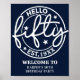 Navy Blue Hello Fifty 50th Birthday Party Welcome Poster