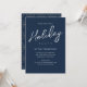 Invite guests to your celebration with this elegant navy blue holiday party invitation, featuring beautiful calligraphy script typography and delicate winter snowflakes. The simple, minimalist design exudes timeless charm and sophistication, perfect for a Christmas party or festive winter gathering. This classic and stylish holiday party invite sets the tone for an evening filled with warmth, cheer, and seasonal elegance.