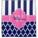 XL White Moroccan Quatrefoil Trellis Pattern #4 with Matching Vertical Stripe, Initial Name Monogram on Hot Pink Quatrefoil with Ribbon