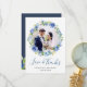 Navy Blue Hydrangea Floral Wreath Photo Thank You Card