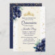 Navy Blue Iris and Glitter Tiara Quinceanera Invitation