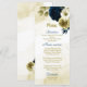 Navy blue ivory gold floral wedding menu