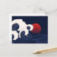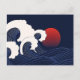Navy Blue Japanese Wave with Red Moon Drawing Postcard