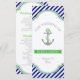 Navy blue, white stripes and anchor nautical wedding ceremony and party program. An elegant stylish striped pattern design with navy blue, white diagonal stripes, a grey anchor with a Kelly green love heart and rope and your text in a frame with a green banner. Modern yet with a vintage look in a sense. You can change background and text colour choosing from over 200 colours from Zazzle colour chart. This classy design is a completely customisable template and is part of a wedding set perfect for a summer nautical or beach wedding.