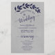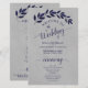 These wedding programs are elegant and tasteful, while still being budget friendly. The hand painted watercolor design features a sprig of deep navy blue leaves on a marbled grey background. The typography features lacy script calligraphy, and there is room for details on the ceremony, the bridal party, and a short thank you.