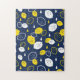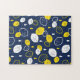 Navy Blue Lemon Art – Refreshing Citrus Design Jigsaw Puzzle