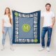 Navy Blue Lime Green Chevrons Custom Monogram Fleece Blanket