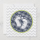 Cute, custom baby shower invitation with baby feet design on Navy Blue, Lime Green Grey Chevron pattern. Neutral baby shower or baby sprinkle invite for baby boy or girl that you can personalise.