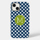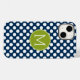 Navy Blue & Lime Green Polka Dots Custom Monogram Case-Mate iPhone Case