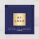 A navy blue background. Personalise and add your business name, your own qr code to your Instagram account and a text. With the text: Follow us!