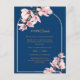 Navy Blue Magnolia Floral Wedding Details Card | Blush Pink Flowers & Gold Arch | Elegant Enclosure Information Card.
