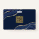 Navy Blue Marble Agate Geode Business QR Code Name ID Badge