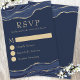 Navy Blue Marble Agate Gold Glitter Wedding RSVP Card