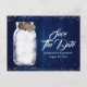 Navy Blue Mason Jar Wood Wedding Save The Date Announcement Postcard