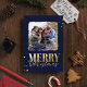 Navy Blue Merry Christmas Gold Photo Foil Holiday Postcard