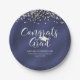Navy Blue Metallic CONGRATS GRAD Confetti Paper Plate