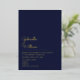 Real gold foil, trendy script wedding invitation featuring a classic design that features the happy couple's names set in an elegant script above the special wedding details on a navy blue background. Designed by Thisisnotme©