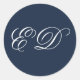 Navy Blue Minimalist Classic Calligraphy Monogram Round Sticker