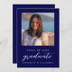 Navy Blue Minimalist Classy 1 Photo Graduation Invitation