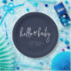 Navy Blue Minimalist Modern Boho Baby Shower Paper Plate