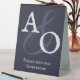 Create a modern and simple sign for your guestbook table with a Navy Blue Minimalist Monogram Wedding Table Tent Sign. Sign design features an elegant script font for your monograms. Additional wedding stationery available with this design as well.
