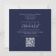 This design features a navy blue wedding simple photo square invitation, with classic and traditional calligraphy script, with modern minimalist, simple typography, classic traditional, with a scannable QR code website, for wedding details, and a minimal guest RSVP