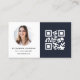 Navy Blue Minimalist Photo QR Code Social Media Business Card