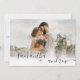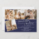 Modern minimalist navy blue and white script wedding with 5 photo grid collage horizontal layout.