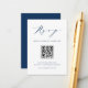 Navy Blue Minimalist Script Black QR Code RSVP Enclosure Card