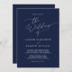 Beautiful navy blue minimalist wedding invitation. Fully customisable with names, dates, location and colours to match your wedding theme.