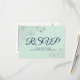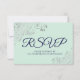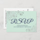 Navy Blue & Mint Green Elegant Silver Lace Wedding RSVP Card