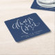 Navy Blue Modern Always And Forever script Square Paper Coaster
