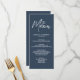 This modern menu features elegant white fonts on a navy blue background. You can add your details in the customise menu. This menu is part of a beautiful matching wedding suite that can be fully personalised.