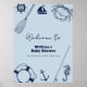 Navy Blue Modern Fishing Boy Baby Shower Welcome Poster
