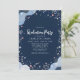 Navy Blue Modern Floral Confetti Graduation Invitation