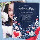 Celebrate the accomplishment of a new nursing graduate with this heartfelt invitation! The design features a vibrant array of flowers, including charming heart-shaped blooms, on a classic navy blue background. Add a cherished photo of the graduate to the back. Customise it with party details, creating a unique and memorable announcement.