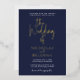 Navy Blue Modern Minimalist Classic Wedding Foil Invitation. Monogram at the back.