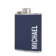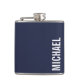 Navy Blue Modern Minimalist Personalised Name Hip Flask