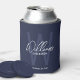 Navy Blue Modern Script Personalised Groomsmen Can Cooler