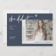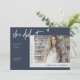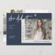 Since she graduated from school—either from high school, college/university, or a graduate program—now it's time to party! Celebrate this amazing milestone with a chic, modern minimalist graduation invitation featuring a stylish handwritten brush script with heart on a navy blue background and the graduate's photo framed in a rectangle. Easily customise the text and photo in the personalisation section.