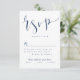 Hand lettered RSVP script in navy blue and white, elegant and stylish, great modern simple personalised wedding RSVP cards.